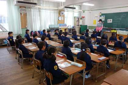 授業ではみんなピシッと背筋を伸ばして、先生のお話を聞いていました。