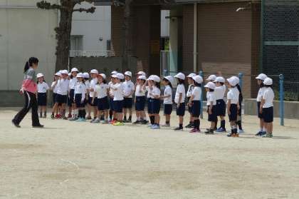 体育でもみんなで整列して、このあとは鬼ごっこ。