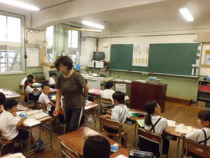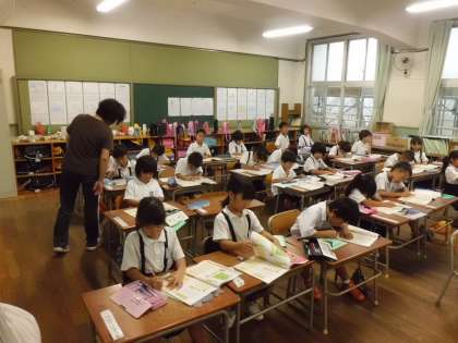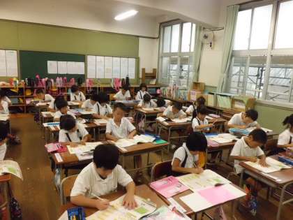 1年生、算数の授業の様子です。具体物を使いながら学習しています。