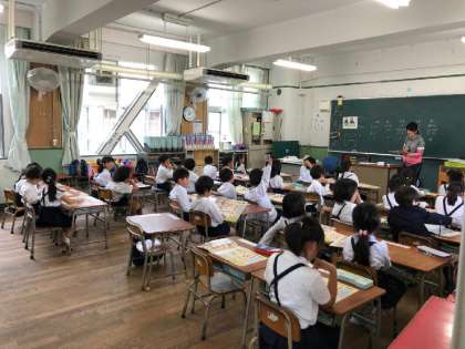 25日3時間目の授業を覗くと、教科書を広げて、その中に何が見えるのかを手を挙げて発言する練習をしていました。