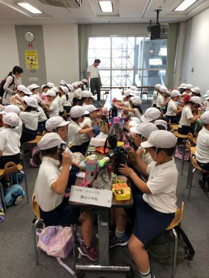 キッズプラザの中で、少し早めにお弁当を食べました。みんなとってもおいしそうに食べていました。