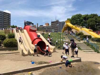昼からはキッズプラザの前の扇町公園の遊具で、思う存分遊びました。