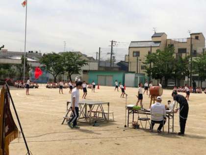 昨日の雨が嘘のように、運動場は水たまりもなく、一時間目から全体練習を進めることができました。