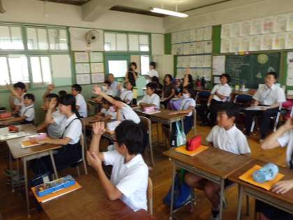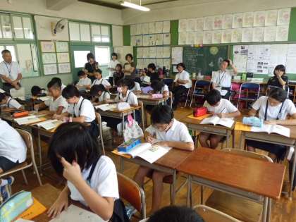 9月17日(水)5時限目に5年2組で道徳の研究授業(教材、星野くんの二るい打)を行いました。授業終了後、学校外から指導していただく先生を招いて、指導力向上の研修会を持ちました。子どもたちは先生の話をしっかりと聞きながら、集中して学習していました。