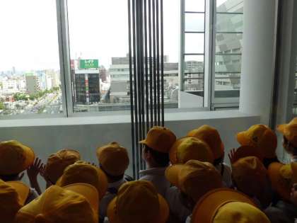エレベータからもどんどん高くなっていく様子が見えました。本校以外にもいくつかの小学校が来ていました。人気のスポットです。