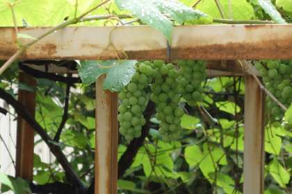 講堂の東側にぶどう棚があります。 そのぶどう棚に今年も、葡萄の実がつきはじめました。
