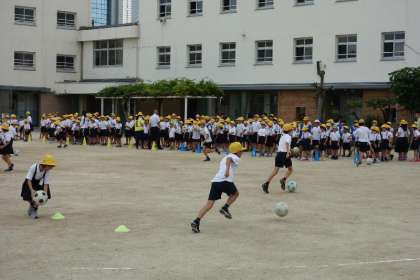 18日の児童集会は、ドリブルリレーです。