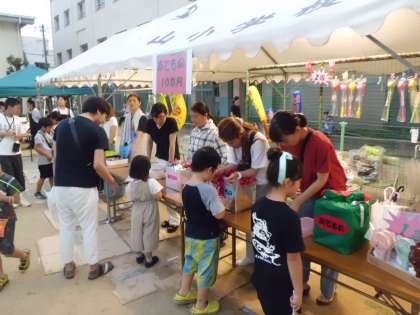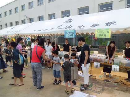 7月26日(金)は盆踊り、27日(度)はたそがれコンサートが小学校のグラウンドで行われました。台風の影響で天気がとても心配でしたが、なんとか予定通りに行うことができました。出店も出て、大盛況でした。