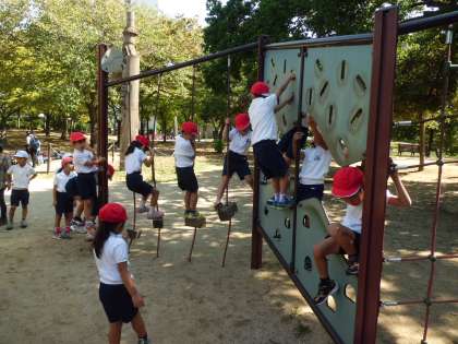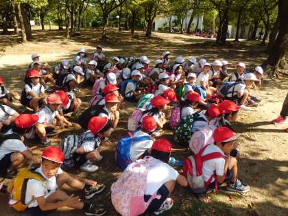 10月8日(水)、1・2年生の遠足がありました。堺の大仙公園です。近くに仁徳天皇陵があります。天候にも恵まれ、広い公園で遊具や芝生広場で体全体を使って活動することができました。どんぐりがたくさん落ちていて夢中になって拾っていた子も多くいました。楽しい一日を過ごしました。