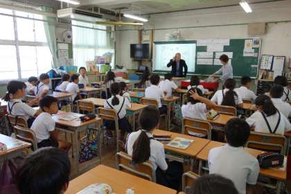 6年生はC−NETと桃谷中学校の英語の先生による英語の授業。