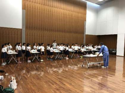 広い施設の見学を終えて、涼しい部屋に戻ってきたら、今度は実験です。