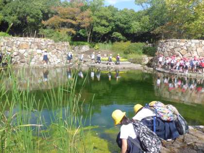 5年生は本日万博公園に行きました。たいへんいい天気で、一日中気持ちよく森林浴を楽しむことができました。途中吊り橋あり、展望台あり、また満開のコスモス園あり、美しい風景も堪能することができました。広々とした公園で走り回り、ちびっこ広場で滑り台などの遊具で楽しみ、たいへん有意義な一日を過ごすことができました。