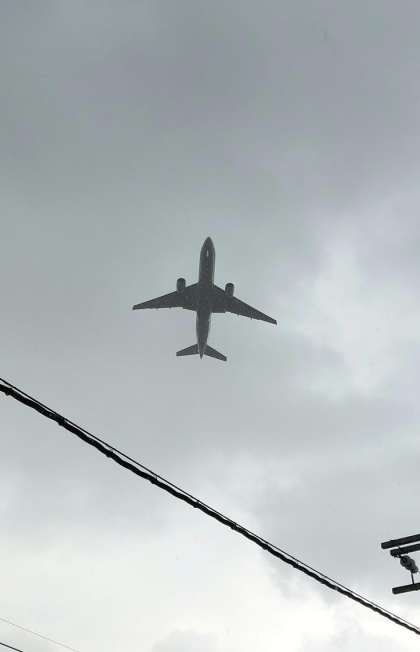 JR北伊丹駅に着くと、轟音と共に飛び去る飛行機の出迎えを受けました。伊丹空港の近くなので、ジェット機が次々と離陸していくちょうど真下になります。