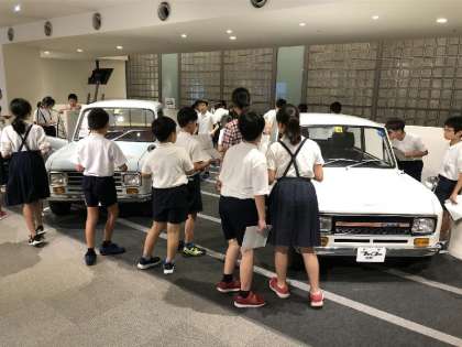初めに動画を見て、ダイハツ工業の始まりである発動機や60年代の自動車を見たり、未来の自動車や自動車の仕組みもいろいろと体験しました。