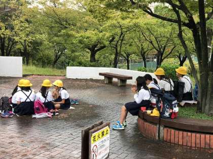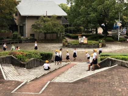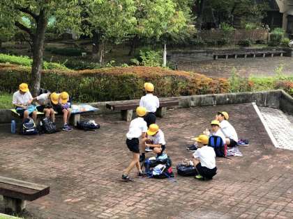 工場見学を終え、次はお弁当の時間。少し歩いて、駅の方に戻ると、駅の真ん前に「兵庫県立西猪名公園」があります。そこで、みんなでお弁当を食べて、鬼ごっこをしてから、学校に戻ってきました。
