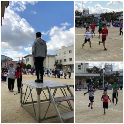 開会式での選手宣誓、準備運動のラジオ体操のあと、徒競走です。