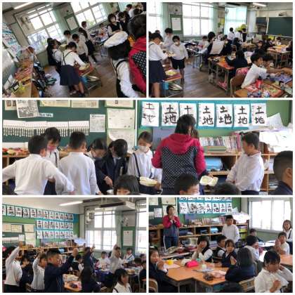各教室に入って子どもたちと一緒に給食を食べました。