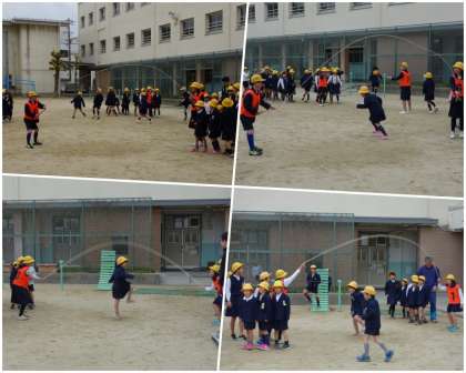19日の長い休み時間は、朝のなわとび集会を受けて、みんなで大縄跳びをしようということで、学年に関係なく、みんなで仲良く飛びました。