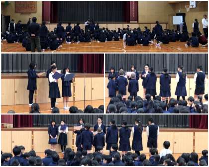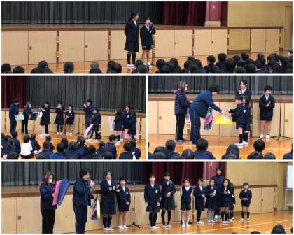 ・最後に25日の土曜授業で開催したかるた大会の表彰を行いました。皆さんよく頑張りました。
