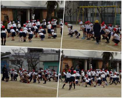 みんな集まったら、全体で準備運動を行います。