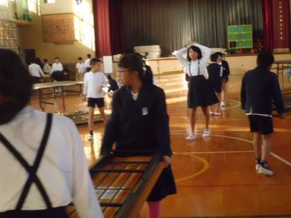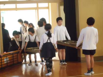 11月10日(月)6時限目、5年生の児童の手伝いを得て、作品展の後片付けをしました。5年生の皆さんのきびきびした動きのおかげで、片付けがどんどん進んでいきます。結果として、予定通りの時間で終えることができました。5年生の皆さん、ありがとうございました。
