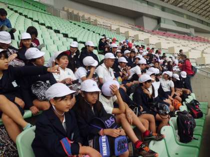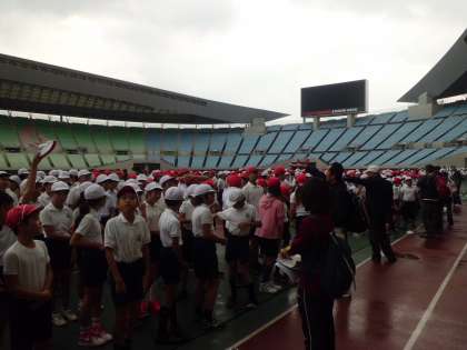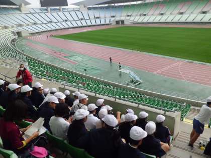 11月12日(水)、6年生がスポーツ交歓会に参加しました。長居競技場・第2陸上競技場で、100m走・4×100mリレー・サッカー・ドッジボール・長なわとび等を他校の子どもとも行いました。天候も回復し、晴れ間も見られ、貴重な経験となりました。
