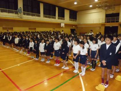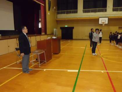 11月13日(木)の児童集会の時に、地域の方から、絵本の読み聞かせをしていただきました。毎年、4年生の校庭キャンプの時に、キャンプファイアでゲームなどをしていただいている方です。講堂でパソコンを使って、映像を見ながらの絵本の読み聞かせです。「しってるねん」と「しげちゃん」の二つの絵本で、子どもたちは話に聞き入っていました。ありがとうございました。