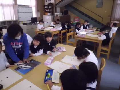 11月17日(月)、2日目の外国人留学生の来校です。4時限目、各学級に入って、子どもと一緒に授業を受けました。