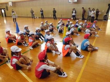 11月27日(木)体育館で生野区の体育研究授業を行いました。2年の跳の運動遊びで「とびっこランド」という単元です。グループに分かれて、今日のめあてにそって、元気よく運動することができました。集合した時に、子どもたちの息づかいが聞こえてくるぐらい、運動量がありました。