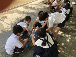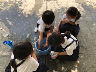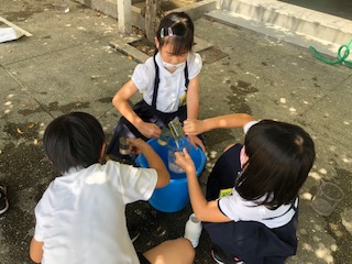 算数で水のかさを調べました。1dlますや1リットルますを使って、牛乳パックや水筒などの水のかさを調べました。さて、きちんとはかれたでしょうか?