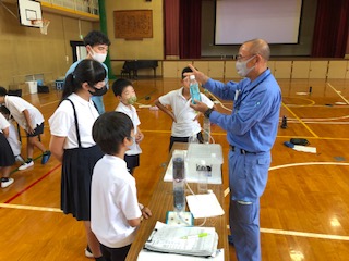 今日は、柴島浄水場から出前授業に来ていただきました。みんなの所に届く「飲める水」になるまでの仕組みを実験道具を使って学びました。色つきの水が透明に!みんな驚きの声をあげていました。