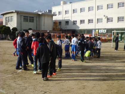 1月3日(土)、勝山小学校の校庭で、勝山小学校の子どもたちが参加している勝山サッカークラブの「初蹴り(初練習)」が行われました。穏やかな天候で、来賓の方や保護者の方が見守る中、子どもたちの元気な歓声が運動場に響き渡ります。最後は、保護者やコーチの方々とゲームを楽しみました。今年も、けがすることなく、1年を通して力を発揮してください。