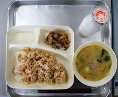 1月8日の給食は正月の行事献立「さけちらし、ぞう煮、焼きれんこん、牛乳」が登場しました。