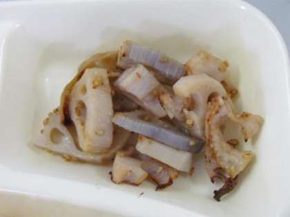 1月8日の給食では、このぞう煮に「先を見通す」という縁起ものの野菜のれんこんのおかず「焼きれんこん」を組み合わせました。(正月の行事献立の2に続きます)