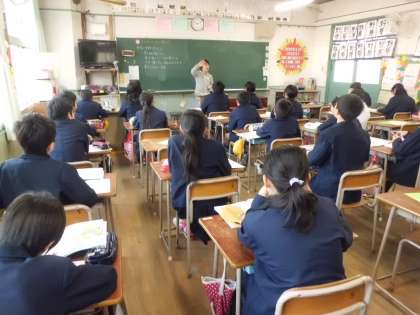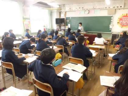 吉川先生による家庭科の授業の様子です。環境についての学習をしているところです。