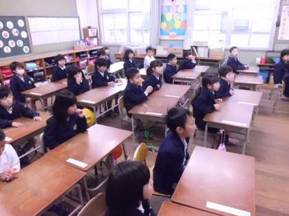3学期初めての図書館ボランティアによる本(紙芝居)の読み聞かせがありました。ボランティアの方の話にどの学級の子どもたちも聞き入っていました。毎回、この時間を楽しみにしています。引き続き、図書館ボランティアの方を募集しています。本校、教頭まで、ご連絡いただけるとありがたいです。よろしくお願いします。なお、4年生の読み聞かせは写真を撮る時に終わっていましたので、載せることができませんでした。