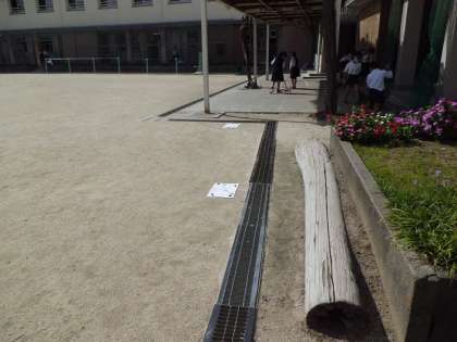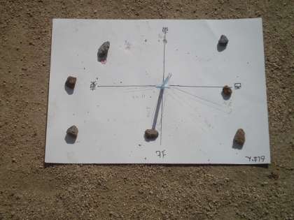 朝からずっと運動場の隅に置いて、時刻と太陽の位置や影のでき方を