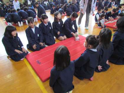 1月17日(土)、かるた大会を行いました。たて割り班を奇数・偶数チームに分け、対戦を進めていきます。上の句を詠んだ段階でかるたをとることができる児童も多く、日頃の取り組みの成果が現れていました。児童の皆さん、さらにしっかりと、百人一首を自分のものにしてください。