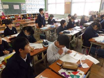 3年生は欠席が多く、今日、明日と学年休業になっています。風邪・インフルエンザがはやっています。ご留意ください。算数の授業の様子です。クラスを二つに分けて授業を進めています。