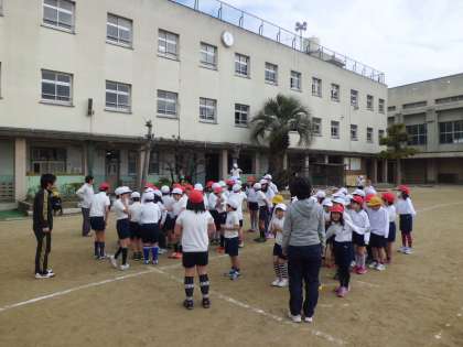 2月2日(月)から6日(金)までの5日間、15分休みを利用して、全校児童で耐寒かけ足を行います。今日は初日となりました。説明、準備運動の後、各学年に分かれて、自分のペースでしっかりと走ることができました。他の休み時間にも、運動場を走る姿が見られるようになってきました。寒さに負けず、風邪ひき・インフルエンザにかからない体力をつけてもらえばと思います。