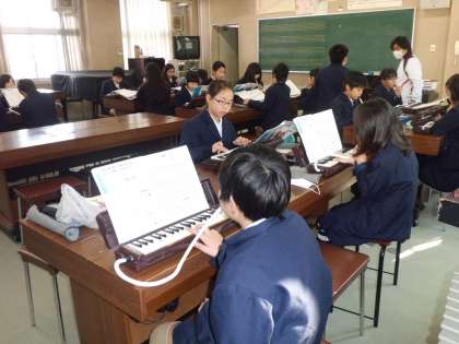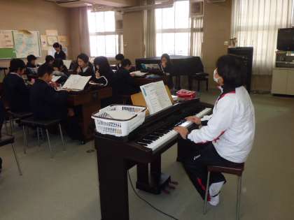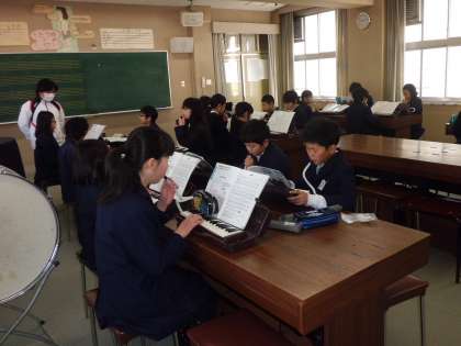2月18日(水)1時限目、5年2組が音楽室で、リコーダーや電子オルガンを使った合奏の学習をしました。曲名は、「威風堂々」です。各パートに分かれ練習。最後に、合奏をし、互いに楽器の音色を聴きながらの演奏でした。
