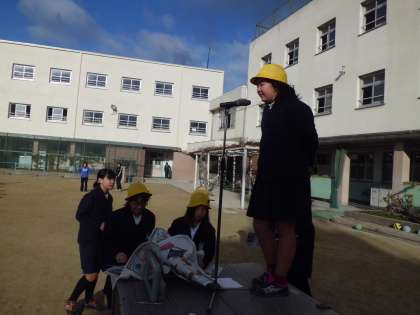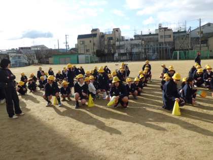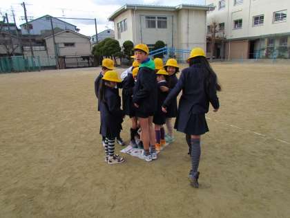 2月19日(木)の学習の前の集会活動の様子です。今回は縦割班に分かれて、新聞紙の上に、いかにしてうまく全員が乗ることができるかを競うものです。新聞紙がだんだんと小さくなっていきますが、グループで工夫して乗っていました。