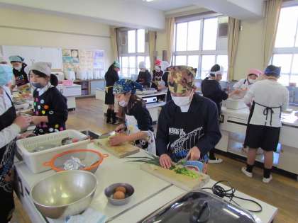 2月19日(木)に5年1組で家庭科の調理実習がありました。今回はお好み焼きです。キャベツのみじん切り、小麦粉をだまにならないようかき混ぜるなど、グループで協力して行うことができました。できあがりに子どもたちは大満足でした。