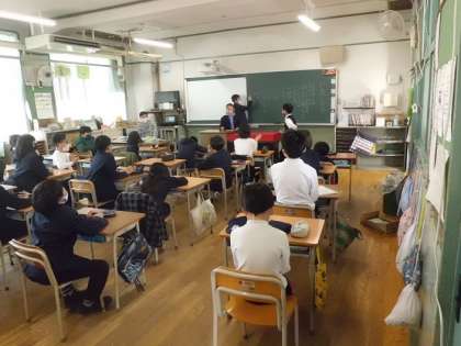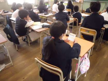 学級活動で、ビンゴやお楽しみ会の話し合いをする4年生です。