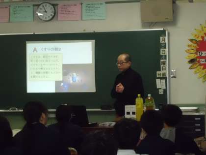 2月25日(水)1時限、6年が、「お薬教室」で学校薬剤師の田中先生から、薬についてのいろいろなお話を聞きました。薬がどのような仕組みで効くのか、薬の正しい飲み方などの話を聞いた後、薬によっては一緒に飲む飲料の種類によって効果が薄れてしまうとういう実験をしました。薬のことがよくわかりました。