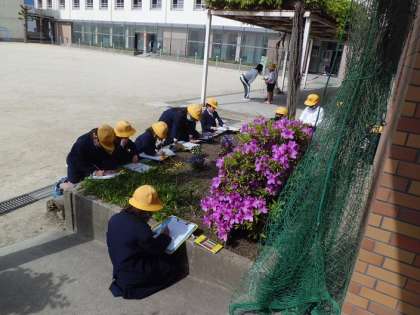 満開のツツジを描いていますが、簡単そうで難しそうです。