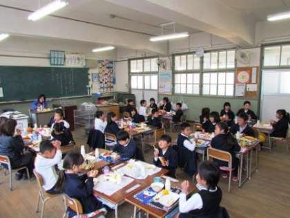半数の児童が手を挙げていました。その後、はっさくを食べた後、牛乳や水を