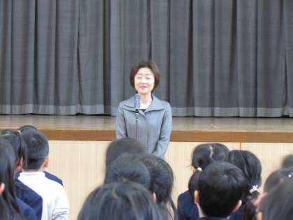 4月8日(水)いよいよ平成27年度が始まりました。まず初めに、新しく勝山小学校に赴任した教職員の紹介、その後、始業式を行いました。2週間ぶりですが、子どもたちはしっかりと話をきくことができました。新1年生の対面式では、緊張したおももちで2年生から6年生の前にならび、全員であいさつをすることができました。