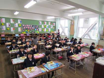 10日のお祝い献立のカツカレーライスも人気の献立で、4年生でもカレーやごはんを増やしてもらうのに急いで並ぼうとするくらいの、トップ5に必ず入る献立です。少しピリ辛かな?と思いましたが、1年生のみなさんからは「あまから!」「ちょうどいい!」と言ってもらえました。