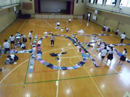 今日は、たくさん集まった古着を使って、今にピッタリの文字を
